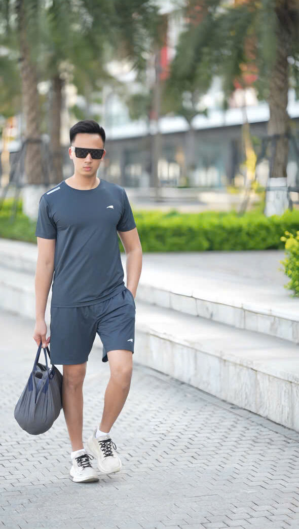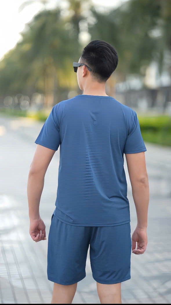Bộ thể thao cổ tròn năng động, thiết kế tối giản nhưng hiệu quả cao khi vận động.