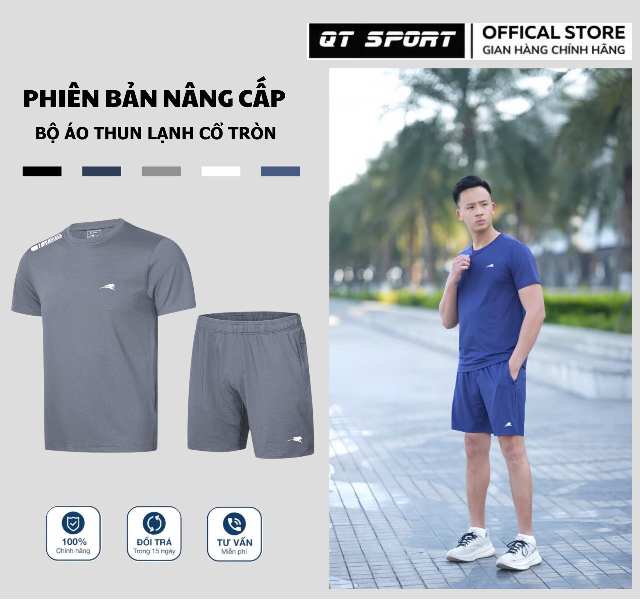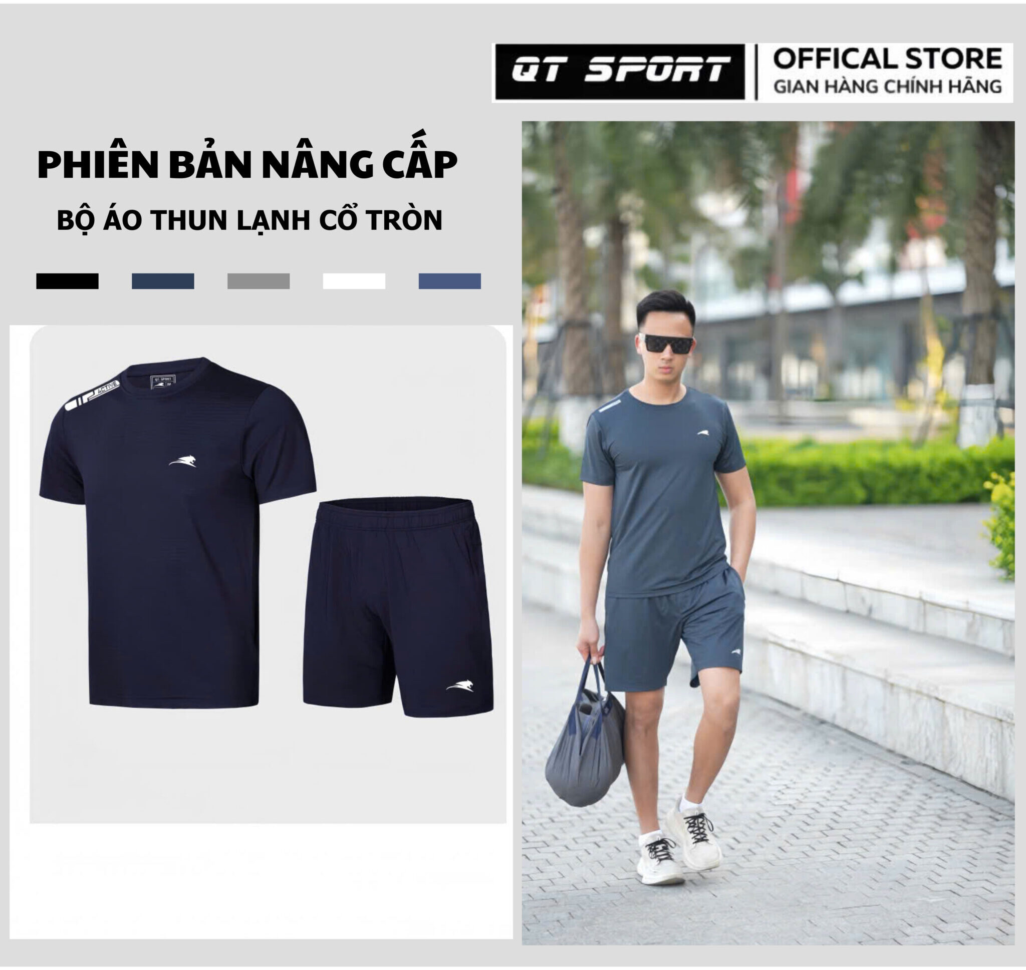 [QT SPORT] BỘ ÁO THUN THỂ THAO CỔ TRÒN T24 + QUẦN T26 – THOÁNG MÁT CỰC ĐÃ